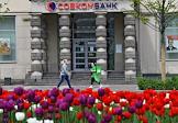 Moscow during the self-isolation regime due to the danger of the spread of the coronavirus infection COVID-19. Introduction from May 12 of the regime of mandatory wearing of masks and gloves in public transport. Genre photography. A man in a medical mask and a Delivery Club courier in a medical mask and rubber gloves near the entrance to Sovcombank.