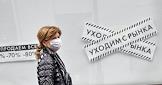 Moscow during self-isolation regime caused by the danger of the coronavirus COVID-19 spread. Introduction of the mandatory wearing of masks and gloves in public transport starting from May 12. Genre photo. Woman wearing face mask walks past the window with an ad reading: "We are closing."