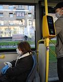 Moscow during self-isolation regime caused by the danger of the coronavirus COVID-19 spread. Introduction of the mandatory wearing of masks and gloves in public transport starting from May 12. Genre photo. Passengers in public transport.