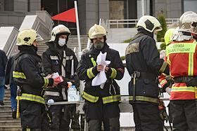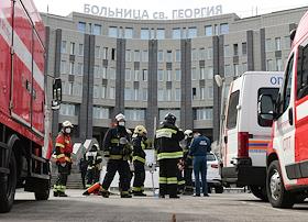 Санкт-Петербург во время режима самоизоляции из-за опасности распространения коронавирусной инфекции COVID-19. Последствия пожара в Городской больнице Святого Георгия. В пожаре погибли пять пациентов с диагнозом COVID-19, подключенных к аппарату ИВЛ в отделении реанимации.