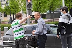 Москва во время режима самоизоляции из-за опасности распространения коронавирусной инфекции COVID-19. Введение с 12 мая режима обязательного ношения масок и перчаток в общественных местах. Жанровая фотография.