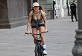 Москва во время режима самоизоляции из-за опасности распространения коронавирусной инфекции COVID-19. Жанровая фотография. Девушка на велосипеде.