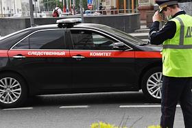 Москва во время режима самоизоляции из-за опасности распространения коронавирусной инфекции COVID-19. Введение с 12 мая режима обязательного ношения масок и перчаток в общественных местах. Жанровая фотография. Сотрудник дорожно-патрульной службы (ДПС) и автомобиль Следственного комитета России на Тверской улице.