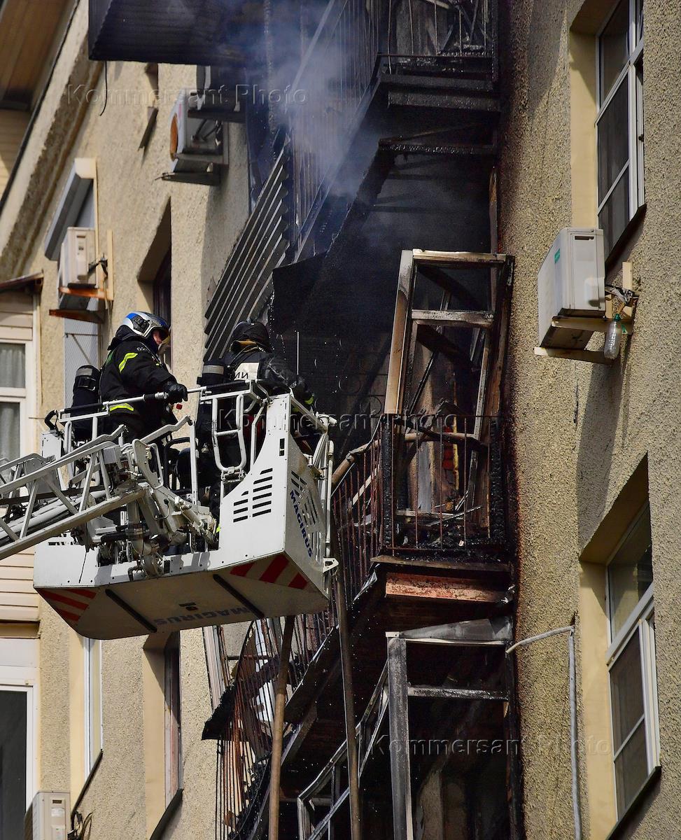 Москва во время режима самоизоляции из-за опасности распространения коронавирусной инфекции COVID-19. Последствия пожара в жилом доме на Фрунзенской набережной.