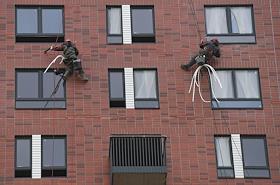 Москва во время режима самоизоляции из-за опасности распространения коронавирусной инфекции COVID-19. Жанровая фотография. Промышленные альпинисты во время строительства нового жилого дома.