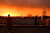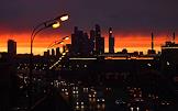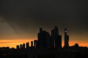 Жанровая фотография. Московский международный деловой центр (ММДЦ) "Москва-сити" на фоне заката солнца.