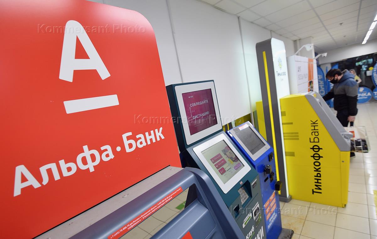 Moscow during self-isolation regime caused by the danger of the coronavirus COVID-19 spread. Genre photo. Client at the Alfa Bank office.