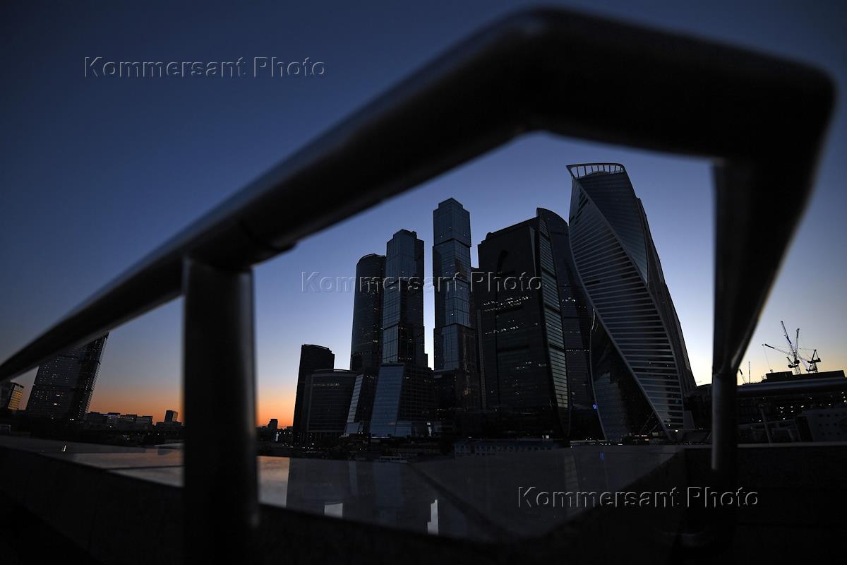 Москва во время режима самоизоляции из-за опасности распространения коронавирусной инфекции COVID-19. Жанровая фотография. Виды ночной Москвы. Московский международный деловой центр (ММДЦ) "Москва-сити".