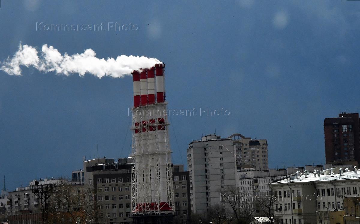 Genre photo. Ecology. CHP plant pipes.