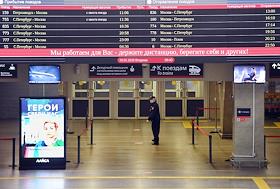 Москва во время режима самоизоляции из-за опасности распространения коронавирусной инфекции COVID-19. Жанровая фотография. Платформа Ленинградского вокзала.