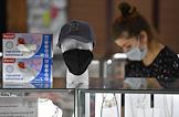 Москва во время режима самоизоляции из-за опасности распространения коронавирусной инфекции COVID-19. Жанровая фотография. Продажа медицинских масок и перчаток на Ленинградском вокзале.