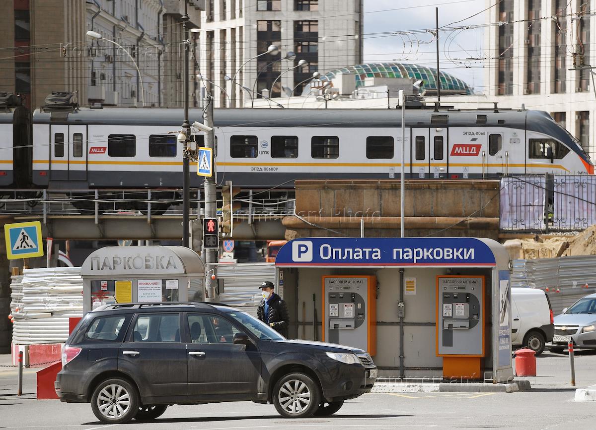 Москва во время режима самоизоляции из-за опасности распространения коронавирусной инфекции COVID-19. Жанровая фотография. Поезд "Ласточка" московского центрального диаметра.
