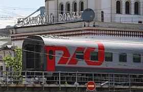 Москва во время режима самоизоляции из-за опасности распространения коронавирусной инфекции COVID-19. Жанровая фотография. Вагон поезда на фоне здания Казанского вокзала.