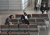 Москва во время режима самоизоляции из-за опасности распространения коронавирусной инфекции COVID-19. Жанровая фотография. Пассажиры в медицинских масках в зале ожидания Ленинградского вокзала.