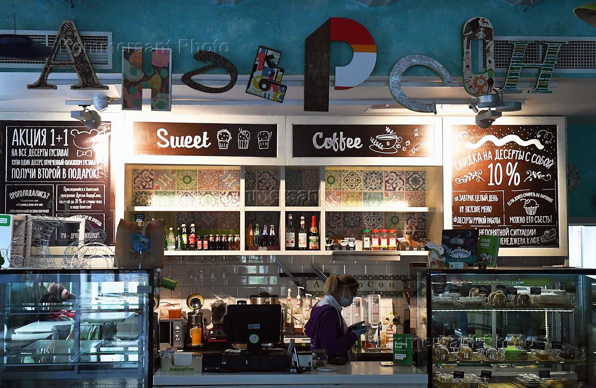 Сеть кафе "АндерСон" во время режима самоизоляции из-за опасности распространения коронавирусной инфекции COVID-19. Жанровая фотография.