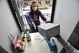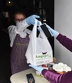 Сеть кафе "АндерСон" во время режима самоизоляции из-за опасности распространения коронавирусной инфекции COVID-19. Жанровая фотография. Выдача заказа навынос.