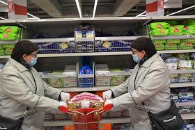 Москва во время режима самоизоляции из-за опасности распространения коронавирусной инфекции COVID-19. Жанровая фотография. Работа гипермаркета "Ашан".