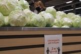 Москва во время режима самоизоляции из-за опасности распространения коронавирусной инфекции COVID-19. Жанровая фотография. Покупатель в медицинской маске в гипермаркете "Ашан" в овощном отделе.