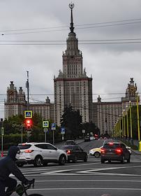 Москва во время режима самоизоляции из-за опасности распространения коронавирусной инфекции COVID-19. Жанровая фотография. Здание Московского государственного университета (МГУ) имени Ломоносова на Воробьевых горах.