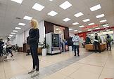 Режим самоизоляции из-за опасности распространения коронавирусной инфекции COVID-19. Жанровая фотография. Посетители в медицинских масках в многофункциональном центре (МФЦ) "Бескудниковский и Восточное Дегунино".