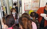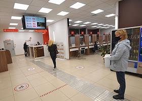 Режим самоизоляции из-за опасности распространения коронавирусной инфекции COVID-19. Жанровая фотография. Посетители в медицинских масках в многофункциональном центре (МФЦ) "Бескудниковский и Восточное Дегунино".
