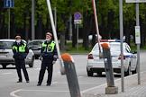 Режим самоизоляции из-за опасности распространения коронавирусной инфекции COVID-19. Жанровая фотография. Сотрудники дорожно-патрульной службы на дороге.