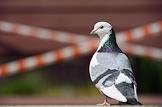 Москва во время режима самоизоляции из-за опасности распространения коронавирусной инфекции COVID-19. Жанровая фотография. Голубь на фоне перекрещенных оградительных лент.