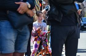 Санкт-Петербург во время режима самоизоляции из-за опасности распространения коронавирусной инфекции COVID-19. Жанровые фотографии. Девочка на велосипеде.