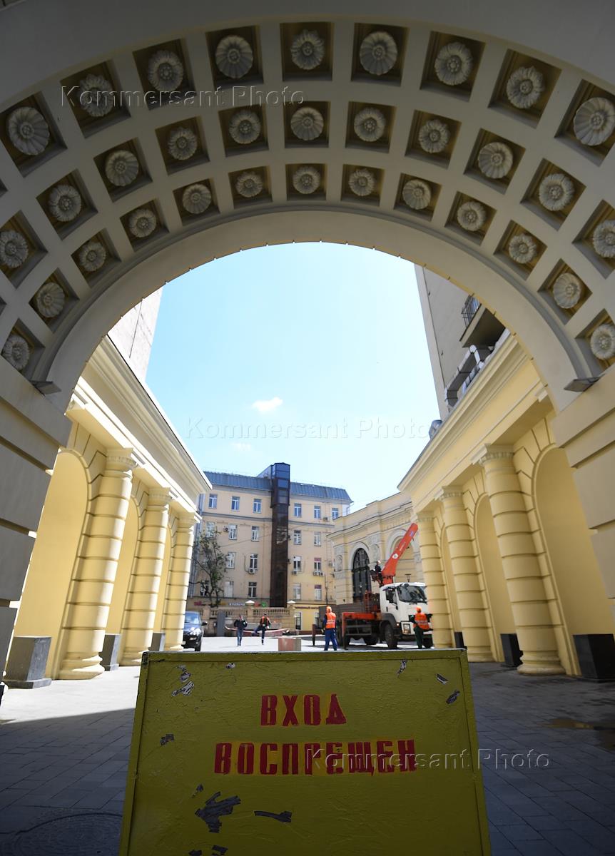 Виды Москвы во время режима самоизоляции из-за опасности распространения коронавирусной инфекции COVID-19. Жанровая фотография. Пустой город. Центральный дом актера имени А.А. Яблочкиной на Арбате.
