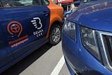 Москва во время режима самоизоляции из-за опасности распространения коронавирусной инфекции COVID-19. Жанровая фотография. Сотовая связь. Автомобиль сервиса каршеринга Belka car на парковке.