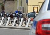 Москва во время режима самоизоляции из-за опасности распространения коронавирусной инфекции COVID-19. Жанровая фотография. Парковка велопроката.