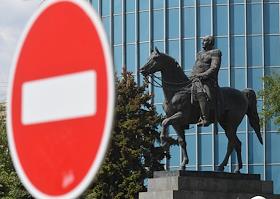 Москва во время режима самоизоляции из-за опасности распространения коронавирусной инфекции COVID-19. Жанровая фотография. Памятник полководцу Михаилу Кутузову возле музея-панорамы "Бородинская битва".