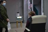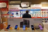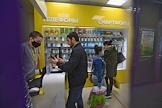 Москва во время режима самоизоляции из-за опасности распространения коронавирусной инфекции COVID-19. Жанровая фотография. Покупатели и продавцы в медицинских масках в салоне сотовой связи.