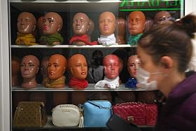 Москва во время режима самоизоляции из-за опасности распространения коронавирусной инфекции COVID-19. Жанровая фотография. Витрина торговой точки в подземном пешеходном переходе.