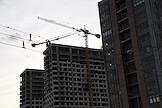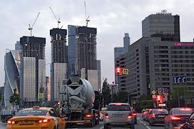 Москва во время режима самоизоляции из-за опасности распространения коронавирусной инфекции COVID-19. Жанровая фотография. Строящиеся многоэтажные здания в районе Московского международного делового центра (ММДЦ) "Москва-сити".