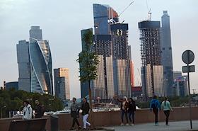 Москва во время режима самоизоляции из-за опасности распространения коронавирусной инфекции COVID-19. Жанровая фотография. Башни-небоскребы Московского международного делового центра (ММДЦ) "Москва-сити".