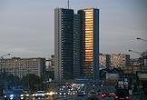 Москва во время режима самоизоляции из-за опасности распространения коронавирусной инфекции COVID-19. Жанровая фотография. Фасад делового здания Московского международного делового центра (ММДЦ) "Москва-сити".