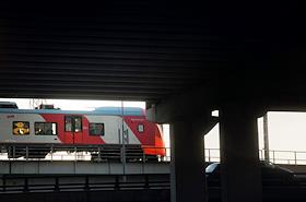 Москва во время режима самоизоляции из-за опасности распространения коронавирусной инфекции COVID-19. Жанровая фотография. Электричка на маршруте Московского центрального диаметра (МЦД).