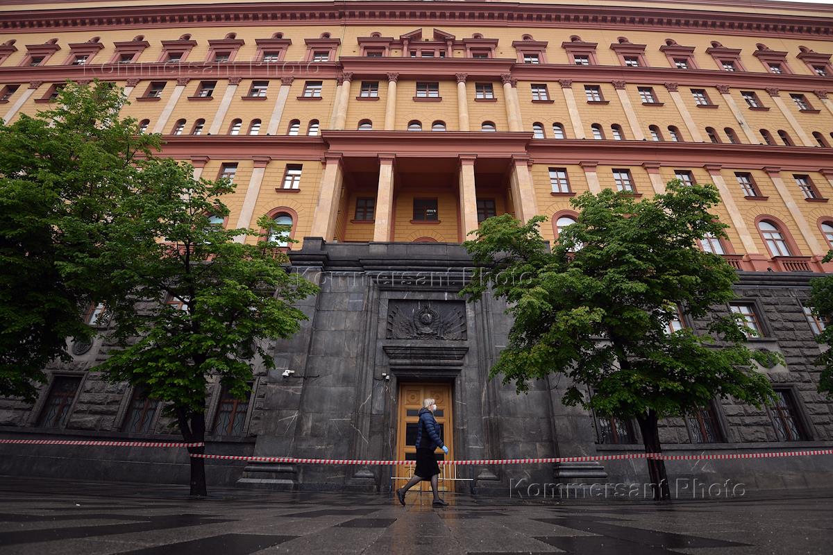 Виды Москвы. Жанровая фотография. Здание Федеральной службы безопасности (ФСБ) России на Лубянской площади. Вывеска "Приемной ФСБ России".