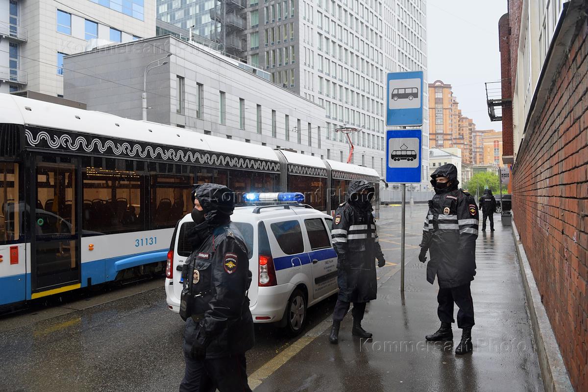 Lawyers hold one-person protests in front of the Investigative Committee of Russia in support of colleagues from Kabardino-Balkaria accused of using violence against police officers. Police officers are seen during the protests.