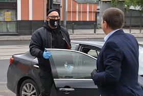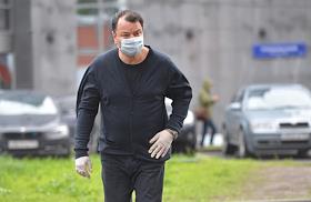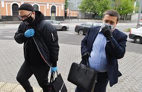 Рассмотрение дела "Седьмой студии" в Мещанском районном суде. Бывший генеральный директор "Седьмой студии" Юрий Итин в медицинской маске перед началом заседания.