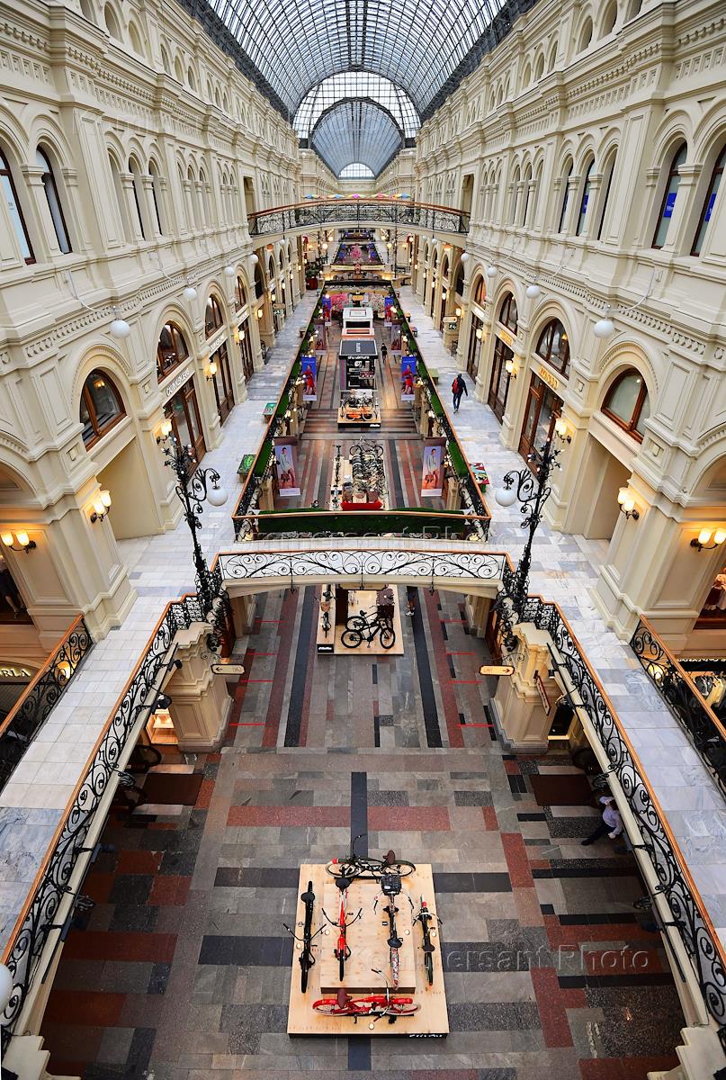 Moscow during self-isolation regime caused by the danger of the coronavirus COVID-19 spread. The beginning of the second stage of removing coronavirus restrictions. Genre photo. Boutique arcade in GUM.