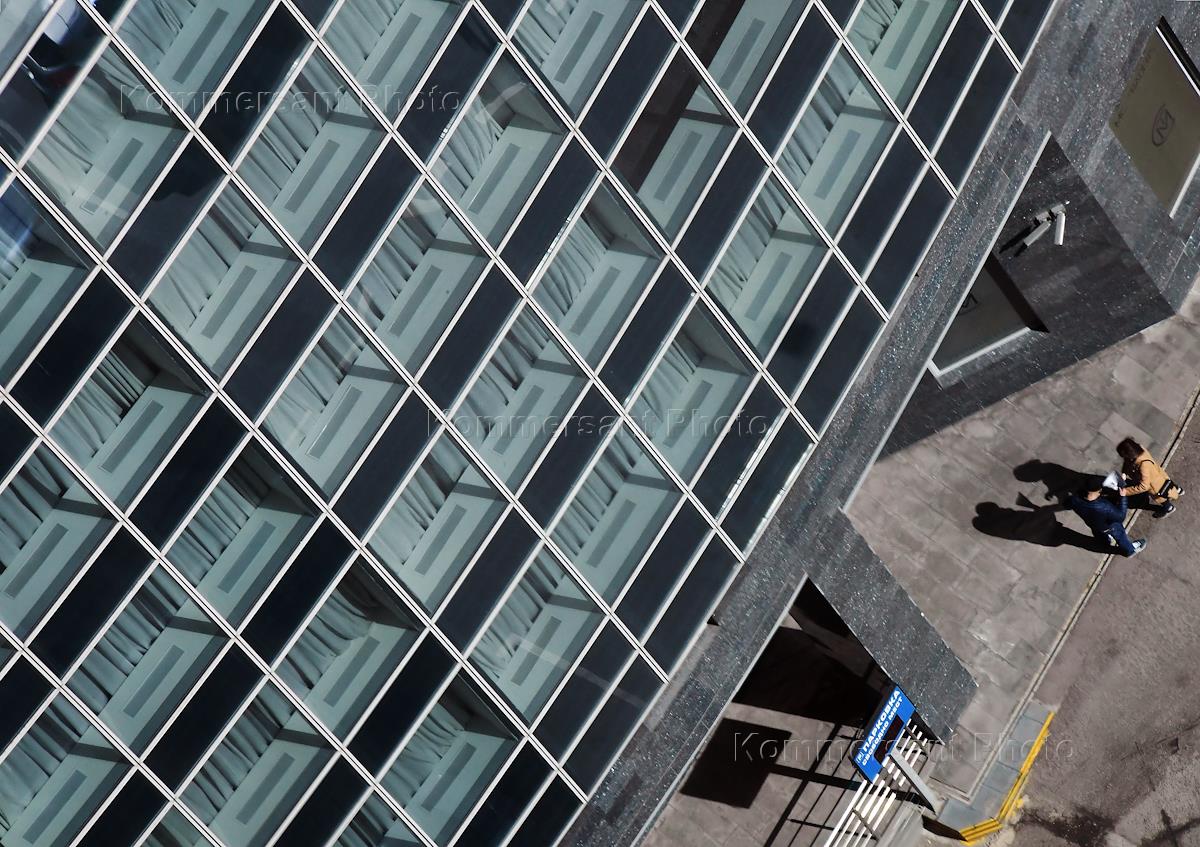 Жанровые фотографии. Вид сверху на фасадную стену офисного здания.