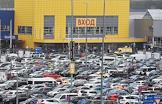 Москва во время режима самоизоляции из-за опасности распространения коронавирусной инфекции COVID-19. Второй этап снятия ограничений, введенных в связи с эпидемией коронавируса. Жанровая фотография. Гипермаркеты "ИКЕА и МЕГА Теплый стан" возобновили работу. Автомобильная парковка гипермаркета.