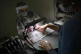 Московская область во время режима самоизоляции из-за опасности распространения коронавирусной инфекции COVID-19. Снятие ограничений, введенных в связи с эпидемией коронавируса. Жанровая фотография. Работа салона красоты.