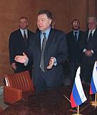 Министр промышленности, науки и технологий России Александр Дондуков на брифинге по результатам встречи сопредседателей Межправительственной российско-словенской комиссии по торгово-экономическому и научно-техническому сотрудничеству, проходившем в Минпромнауки России.