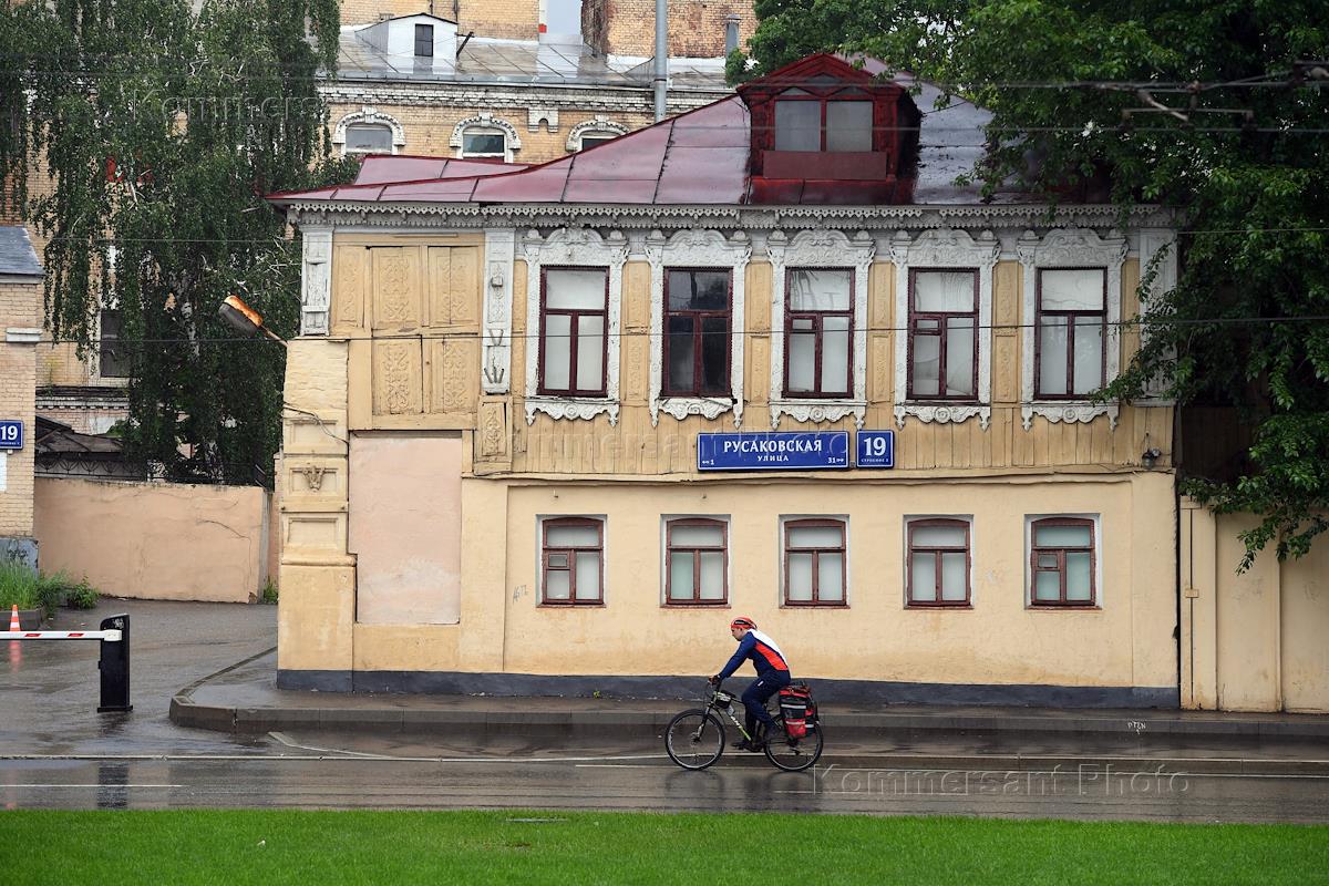 Виды Москвы. Старинный дом № 19 с каменным фундаментом и деревянным вторым этажом по Русаковской улице.