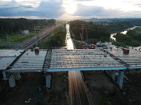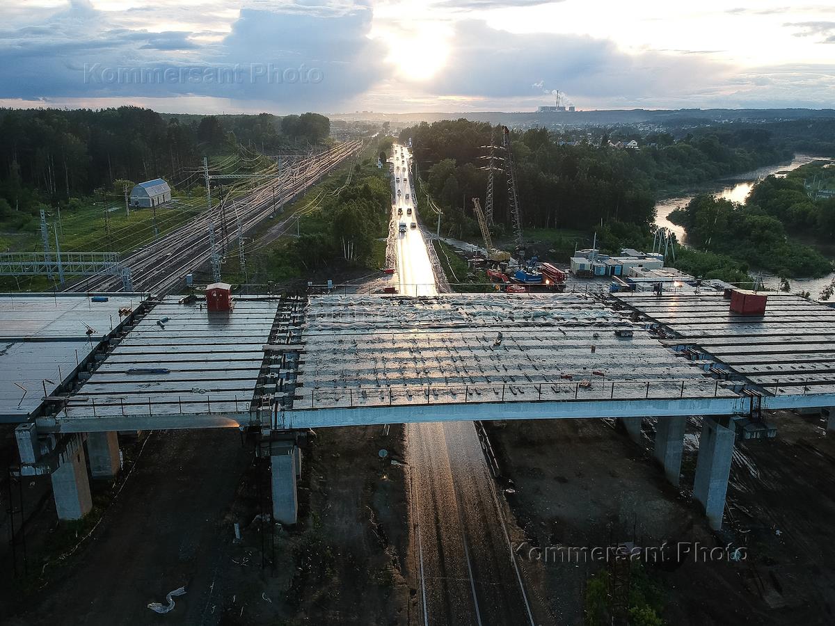 Строительство участка дороги Восточного обхода Новосибирска в поселке Барышево.