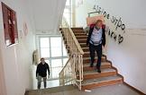 Виды Новосибирска и Новосибирской области. Жанровая фотография. Начало сноса старого здания гимназии №3 в Академгородке Новосибирска. Учебники разбросаны на полу.