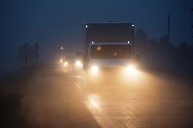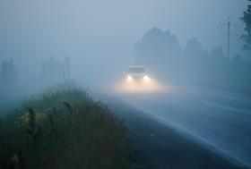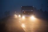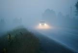 Виды Новосибирска и Новосибирской области. Жанровая фотография. Автомобиль на дороге в тумане.